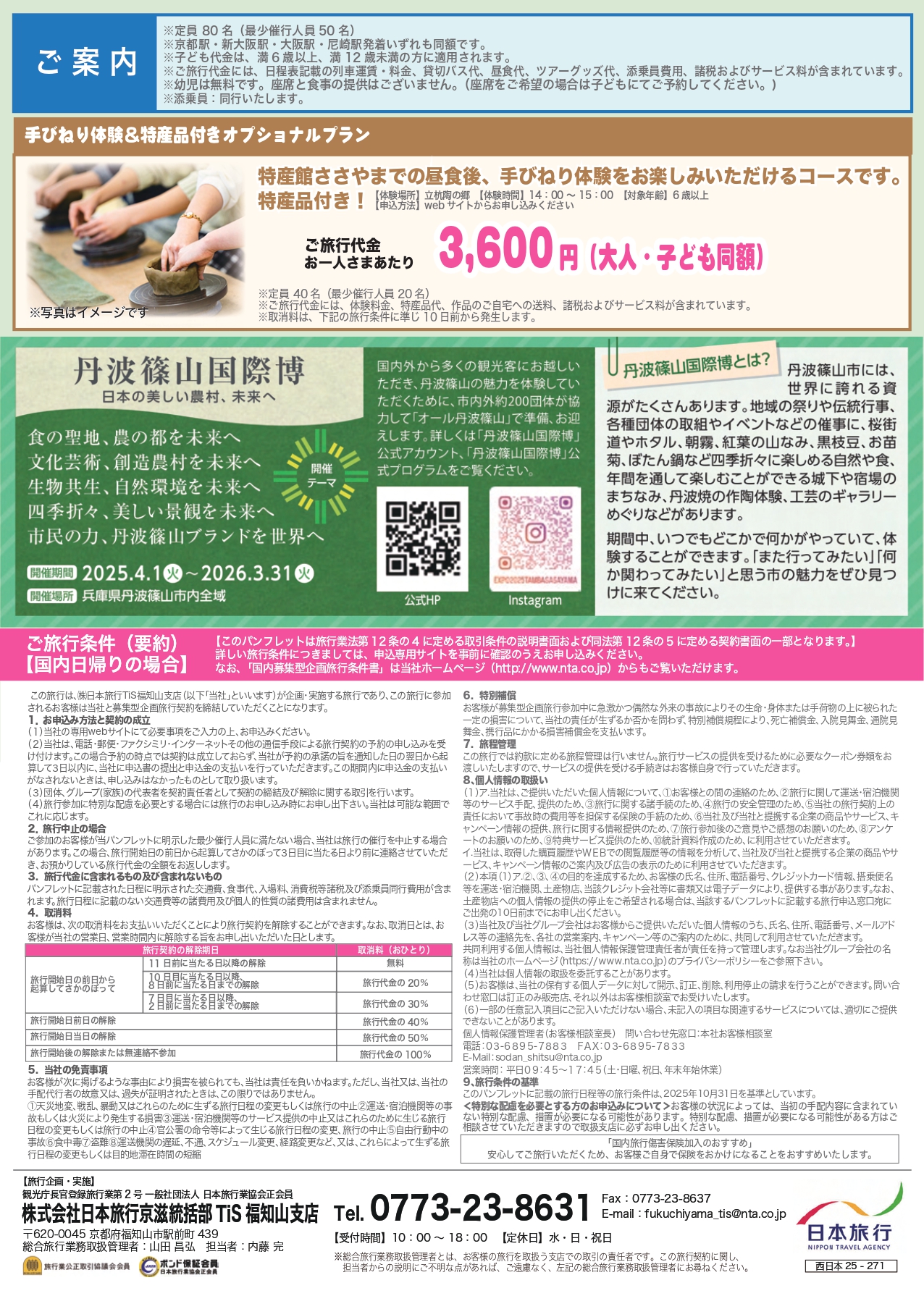 丹波篠山の特産を使ったランチ、城下町散策が付いていて、オプションで陶芸体験がセットできます。